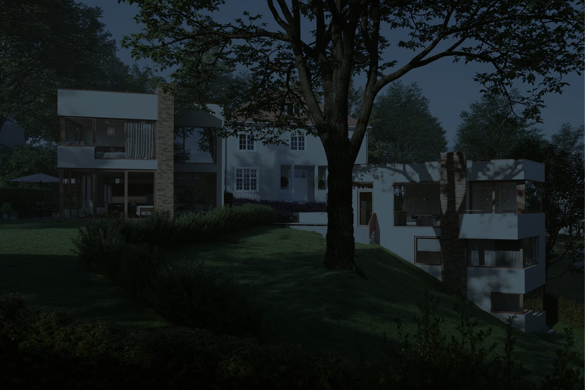 To lekre designboliger med stor vekt på kvalitet og estetikk både i fasader og innvendig på Vinderen i skrånende terreng med god utsikt og mye sol.